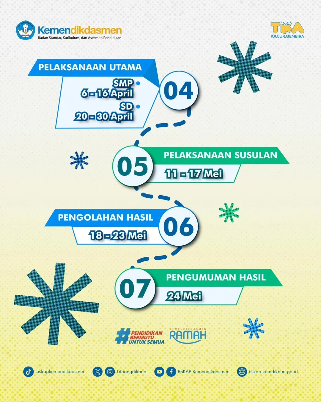 Lini masa pelaksanaan Tes Kemampuan Akademik (TKA) SD/MI dan SMP/MTs Tahun 2026 telah ditetapkan🥳